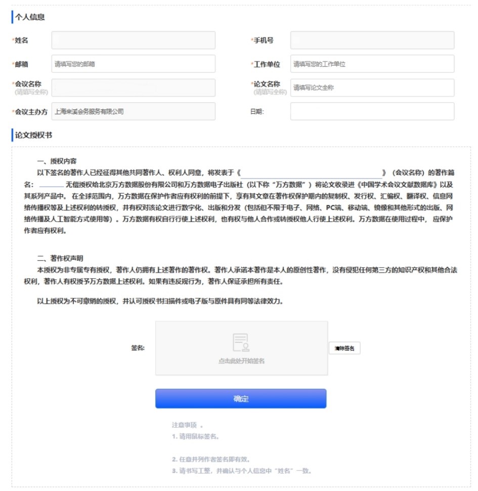请各位作者在收到签署授权书的二维码后,及时完成签署,以便摘要顺利进入发表流程。